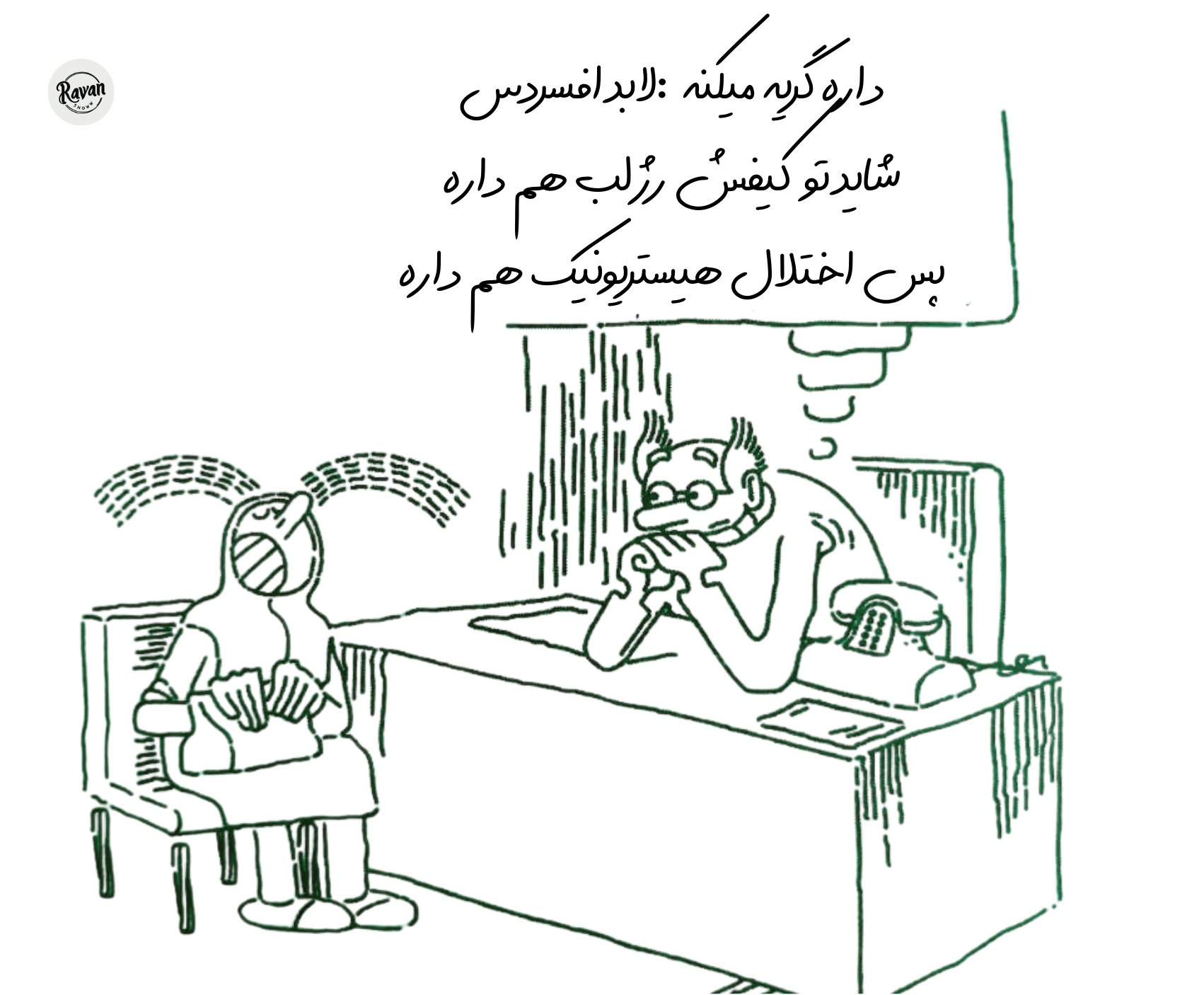 مراجع سلام میکند و گریهاش میگیرد، عمه درمانگر بلافاصله میگوید: «حتماً افسرده است!»